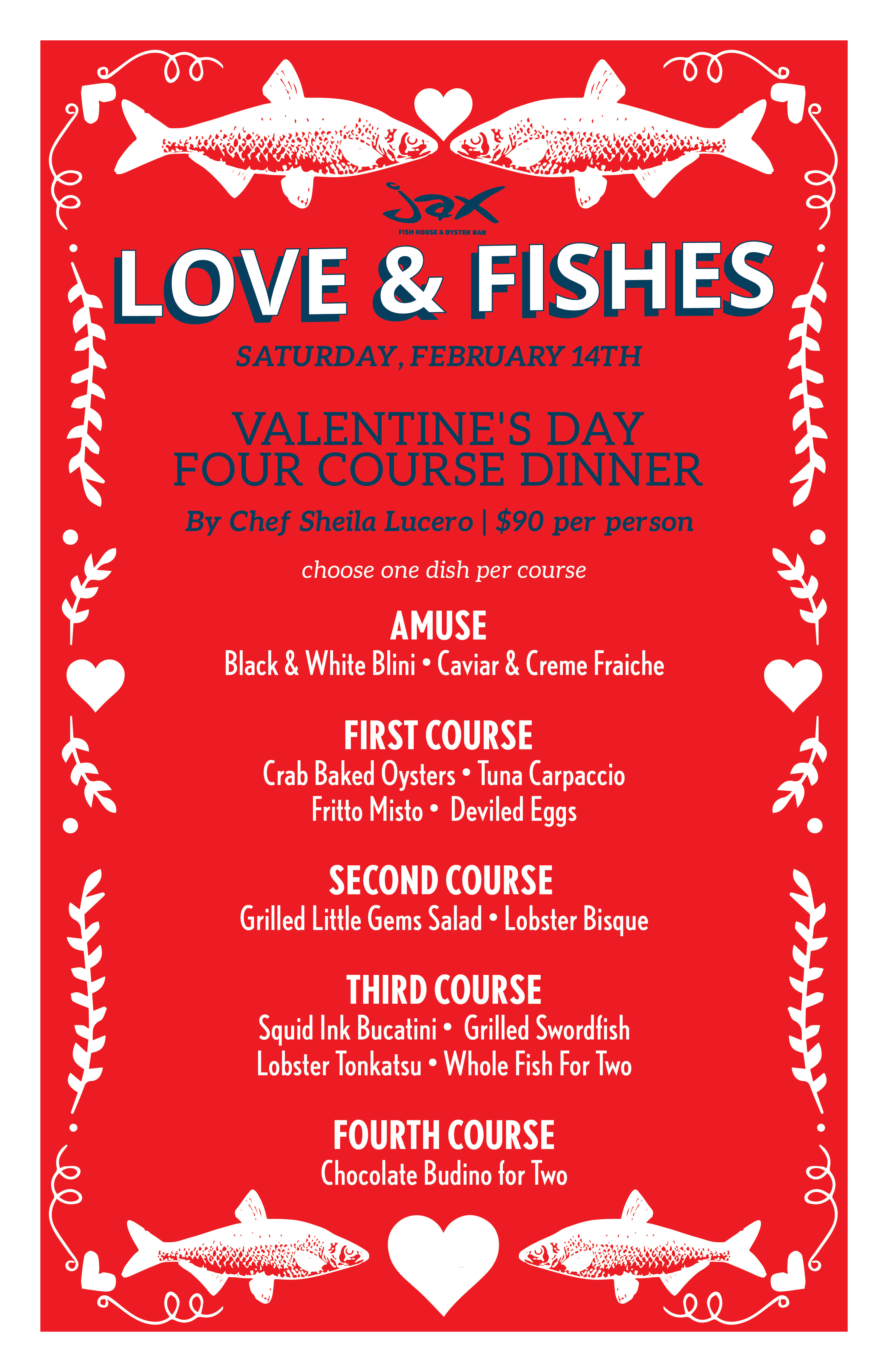 Four course Valentine’s Day prix-fixe menu by Chef Sheila Lucero
